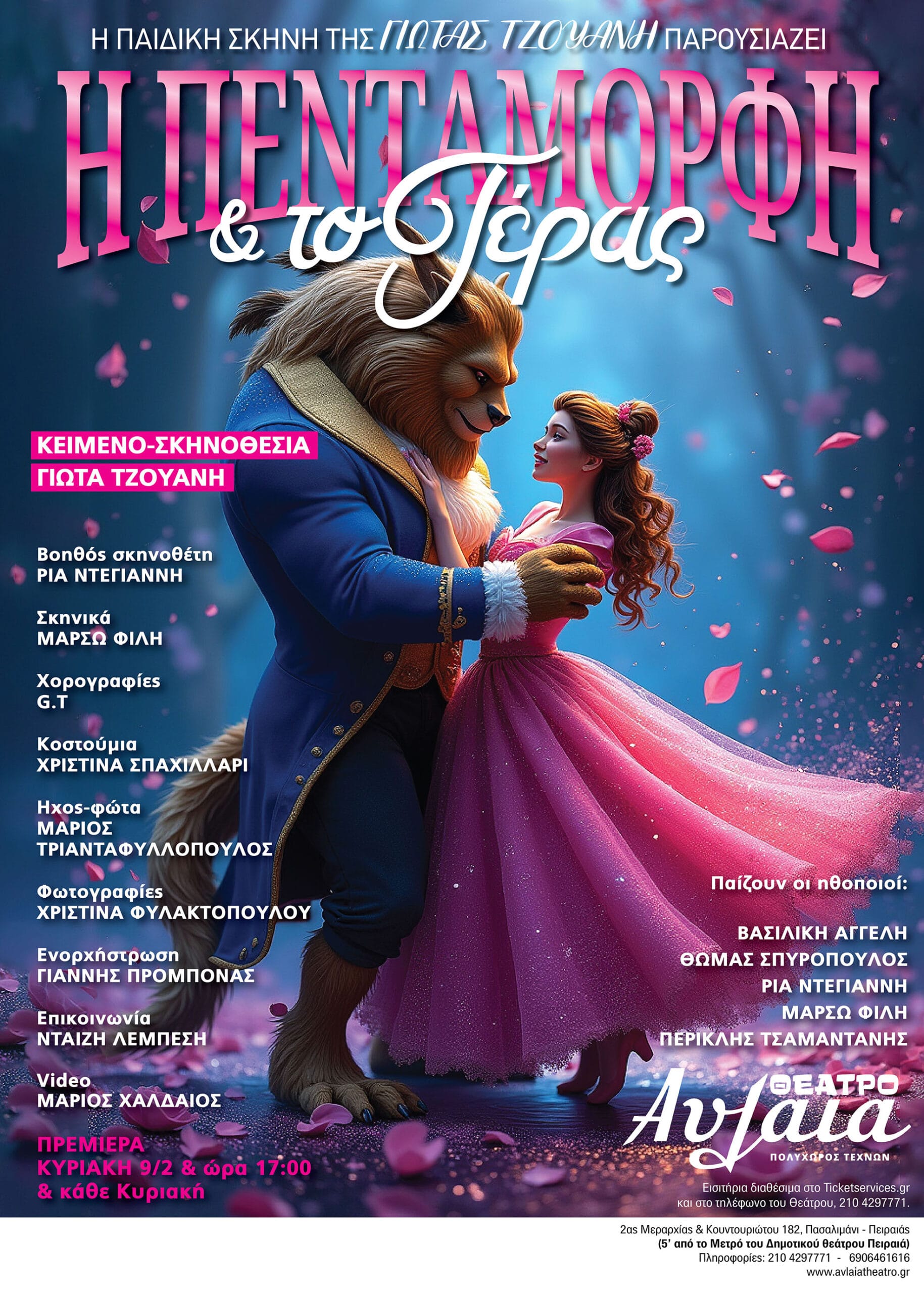 Η Παιδική Σκηνή της Γιώτας Τζουάνη , παρουσιάζει στο Θέατρο Αυλαία στον Πειραιά , από την ΚΥΡΙΑΚΗ 9 ΦΕΒΡΟΥΑΡΙΟΥ και κάθε ΚΥΡΙΑΚΗ στις 17.00 την μαγική ιστορία αγάπης “ Η ΠΕΝΤΑΜΟΡΦΗ & ΤΟ ΤΕΡΑΣ “..