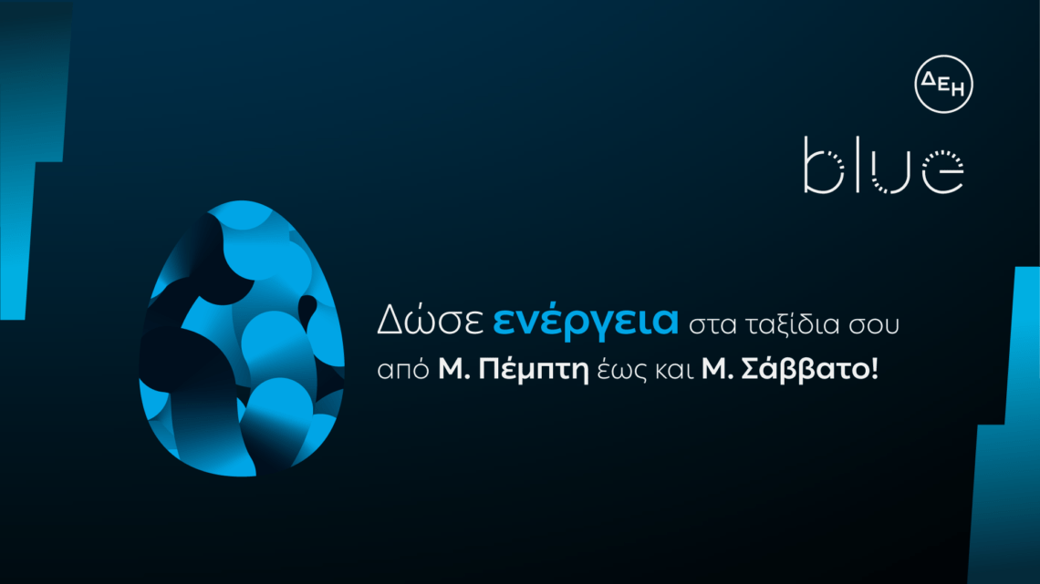 Η ΔΕΗ blue φέτος το Πάσχα δίνει τη δυνατότητα στους εγγεγραμμένους χρήστες της εφαρμογής PPC blue να φορτίζουν φθηνότερα τα ηλεκτροκίνητα οχήματά τους σε ταχυφορτιστές ΔΕΗ blue (DC/HPDC), στην τιμή των AC φορτιστών, με 0,40€/kW, από την Μεγάλη Πέμπτη μέχρι και το Μεγάλο Σάββατο. Κατά την έξοδο του Πάσχα, οι οδηγοί μπορούν να προγραμματίζουν με μεγαλύτερη άνεση την φόρτιση των οχημάτων τους στο ταξίδι, κάνοντας κράτηση και χρήση των ταχυφορτιστών που τους εξυπηρετούν μέσα από την εφαρμογή PPC blue, η οποία είναι διαθέσιμη για συσκευές iOS και Android.